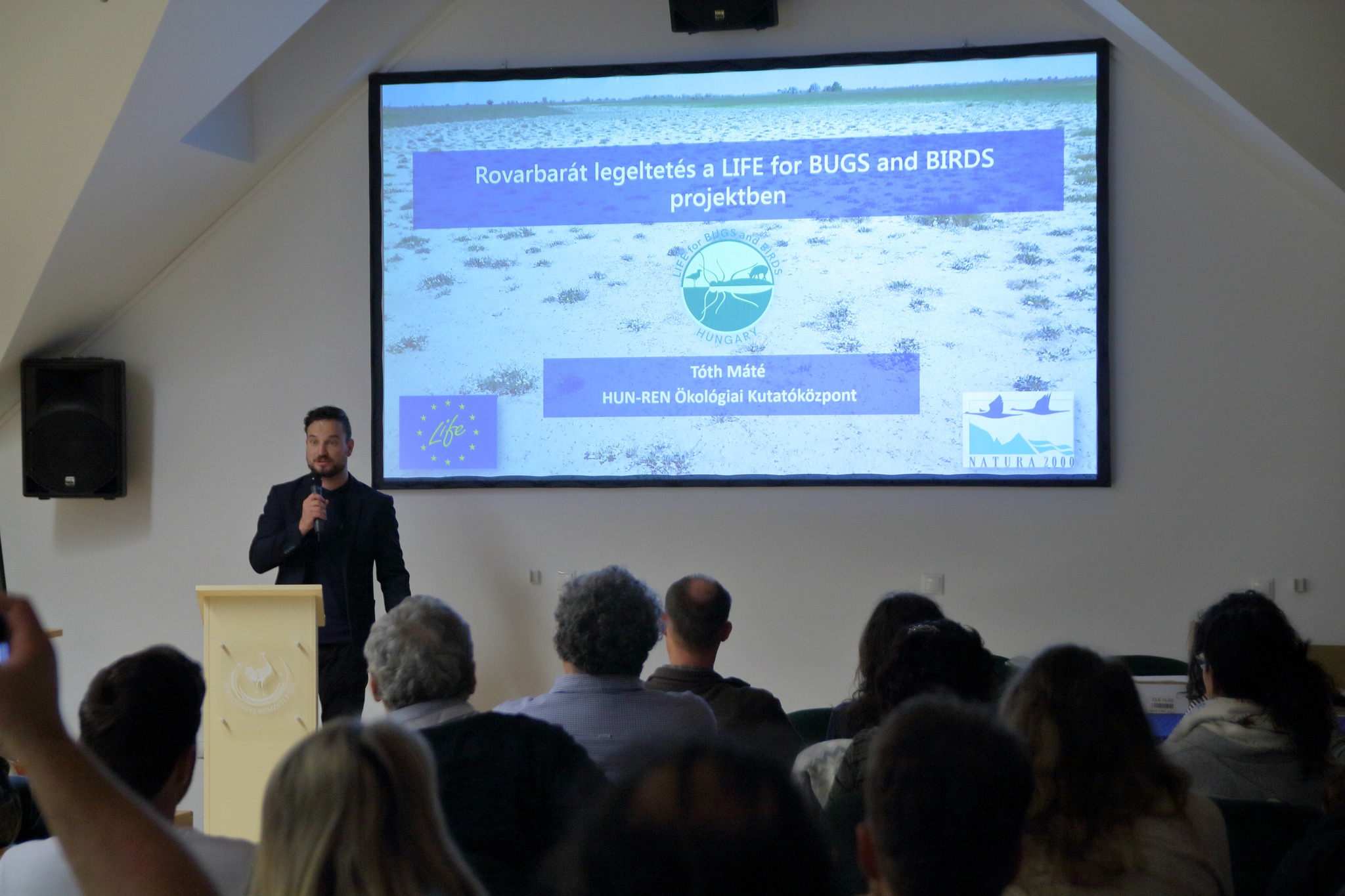 There was a huge interest in the 2nd Biodiversity Conference organised by the LIFEforBUGSandBIRDS project, the Biodiversity Centre of the University of Debrecen, the Faculty of Agricultural, Food Sciences and Environmental Management of the University of Debrecen and the Hortobágy National Park Directorate. The theme of the event was innovative conservation with animals, focusing on regenerative agriculture, grazing and rewilding. The conference was attended by representatives of the most prominent national conservation organisations as well as international experts. The two-day conference, which included presentations and field activities, had a great atmosphere, and provided a great opportunity for professional exchange and learning from each other’s work.